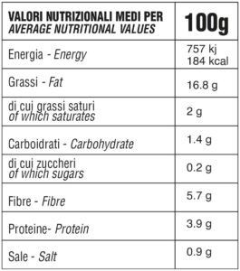 Storage: prima dell’apertura del vasetto può essere conservato a temperatura ambiente in un luogo fresco e asciutto; dopo l’apertura conservare in frigo per un massimo di due giorni.