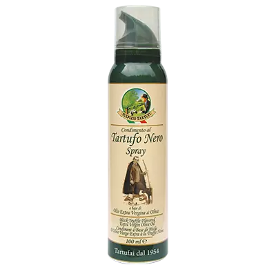 Il Condimento Naturale al Tartufo Nero Spray da 100 ml è a base di Olio extravergine di oliva arricchito con aroma naturale of black summer truffle, excellent for seasoning delicious and original truffle-based recipes.