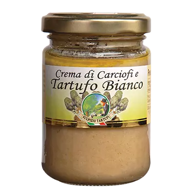 La crema di carciofi e tartufo bianco (130 gr) unisce il gusto deciso ed intenso della crema di carciofi con quello delicato del tartufo bianco.