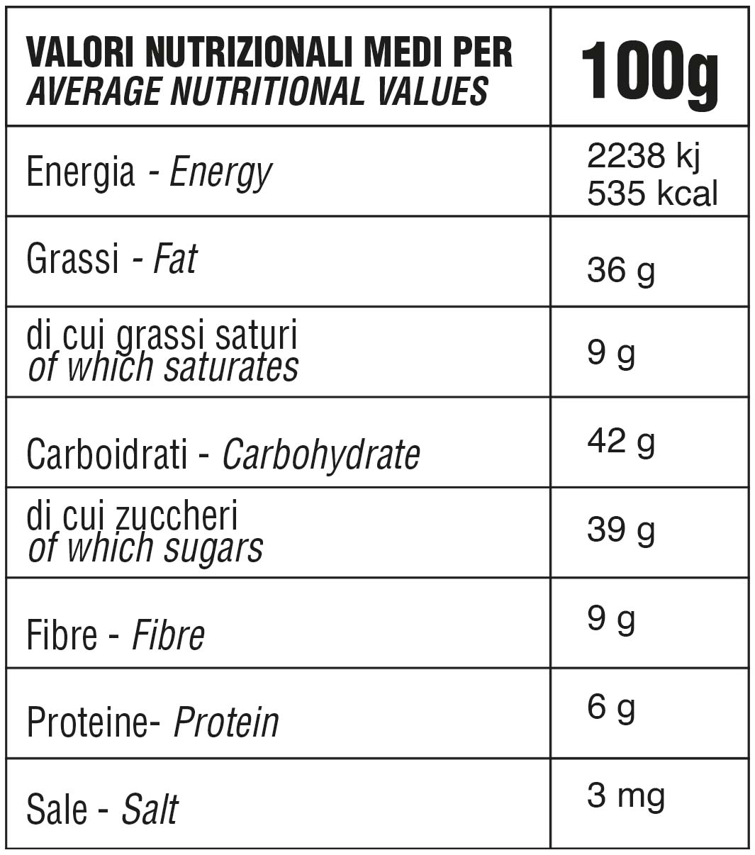 Ingredients: Zucchero, grasso vegetale di girasole, cacao magro in polvere 25,5%, siero di latte in polvere, tartufo (Tuber Aestivum vitt) 2%, aroma di tartufo bianco, emulsionante: lecitina di soia, sale, aroma naturale di vaniglia.