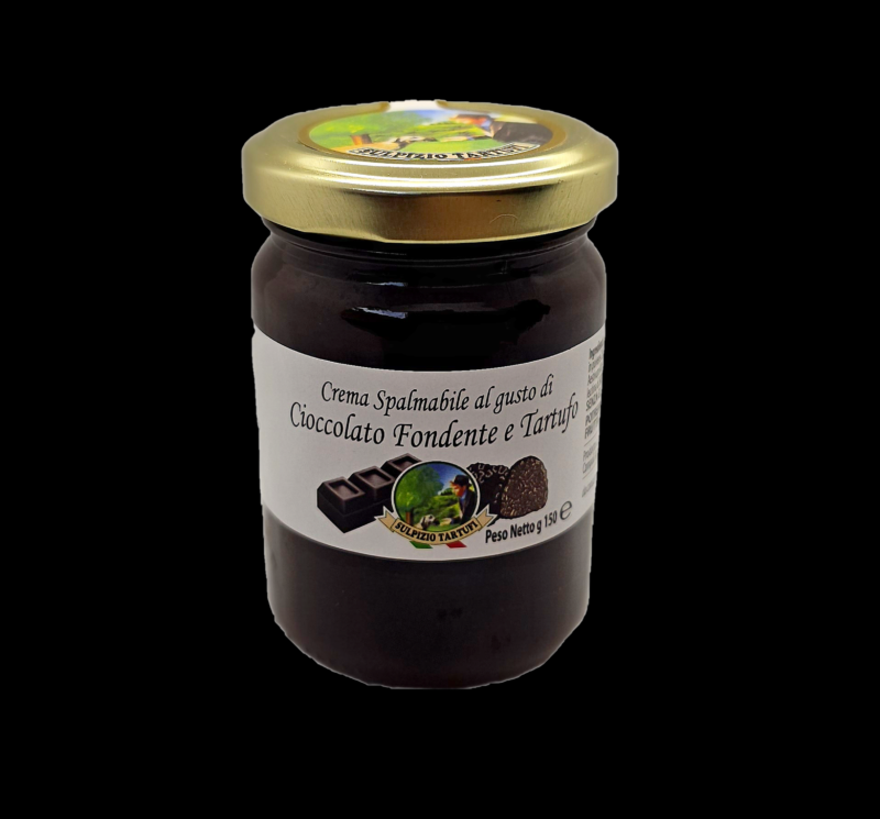 La crema spalmabile di cioccolato nero fondente con pezzetti di tartufo nero ha un sapore forte, avvolgente e deciso con il retrogusto del tartufo nero.