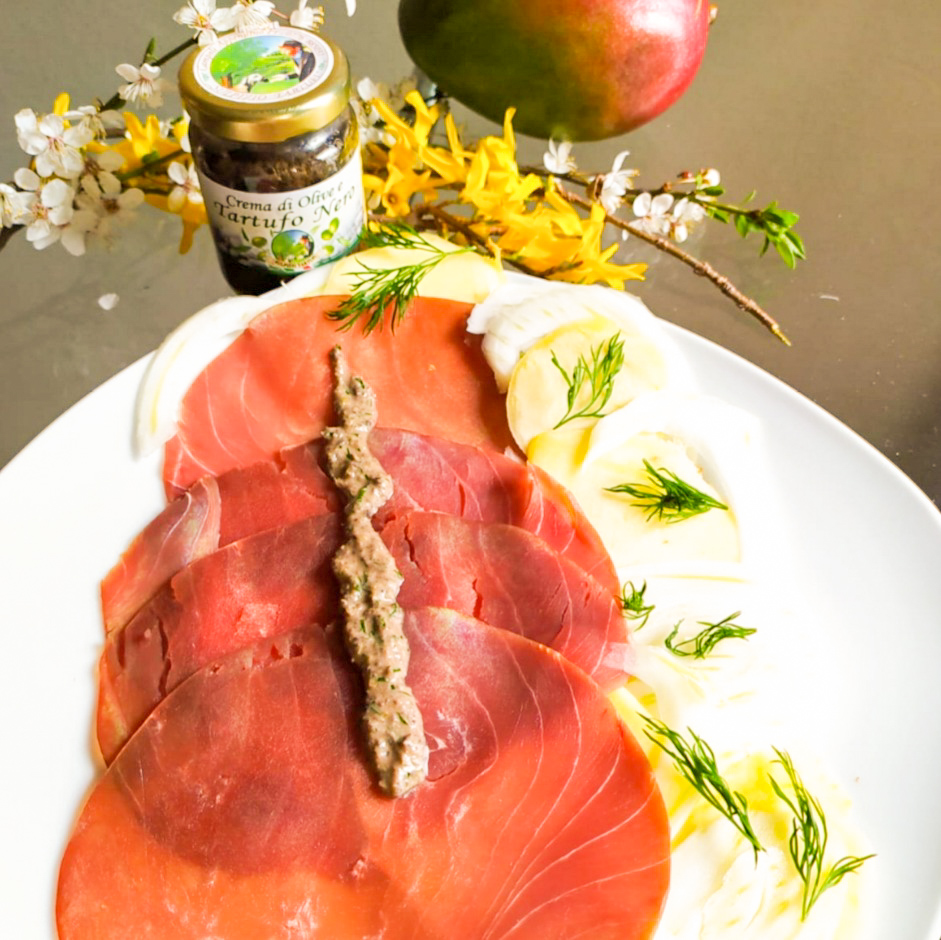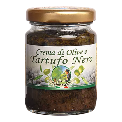 La crema di olive e tartufo (80 gr) it combines the stronger and more intense flavor of black olives with the delicate one of the two species of black truffles: winter and summer, restoring a unique taste to the palate.