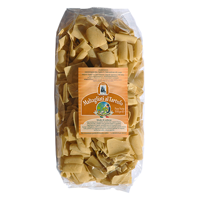 Maltagliati with truffles, available in a 500 g bag, are quick and easy to cook for a refined and tasty first course with truffles.