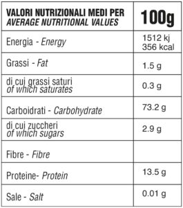 Ingredients: semola di grano duro (glutine), tartufo (Tuber Aestivum e Tuber Borchii) 1%, acqua.