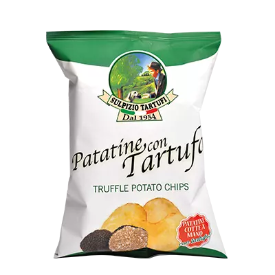 La Patatine con Tartufo no cooked by hand, they have a thicker cut and have a truly unique and inimitable flavor. Suitable for all occasions, they are able to surprise young and old thanks to their crunchiness, browning and above all their taste.