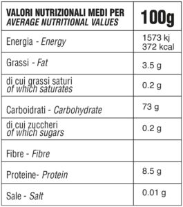 Ingredients: farina di mais giallo 98%, funghi porcini secchi (Boletus Edulis), tartufo essiccato 0,15% (Tuber Aestivum), prezzemolo essiccato, erba cipollina essiccata, aroma di tartufo, aglio essiccato.
