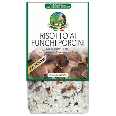 The Risotto with Porcini Mushrooms contains in the package all the ingredients necessary for the preparation of an excellent Risotto ai Funghi. Quick and easy to cook, it is the ideal product to prepare a simple and tasty meal suitable for any occasion; we recommend that you always keep a package in the pantry.