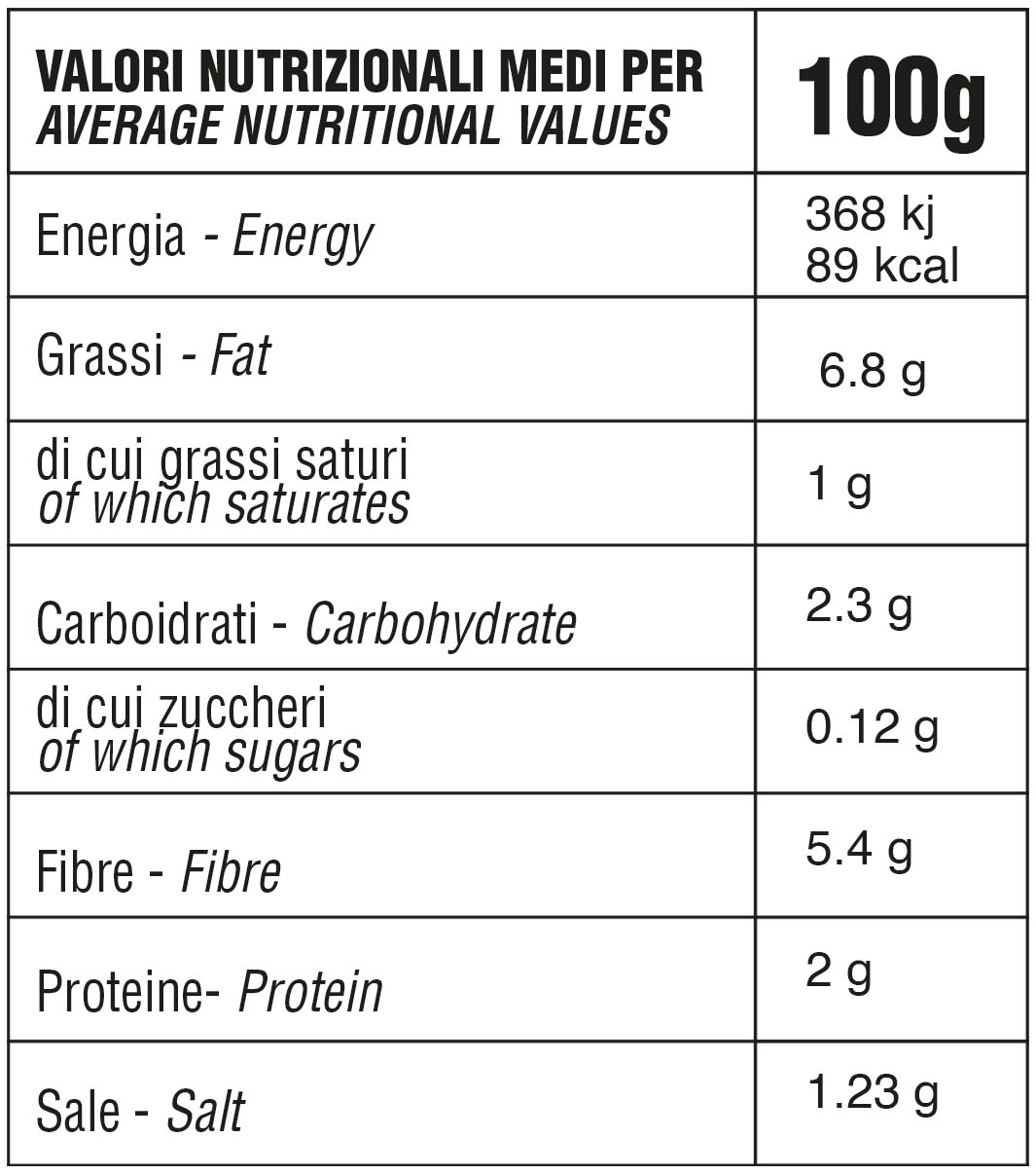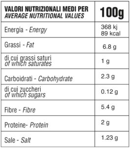 Storage: prima dell’apertura, è possibile conservare la confezione in dispensa. Una volta aperto, ricoprire con olio di oliva, chiudere il vasetto e conservare in frigo per qualche giorno.