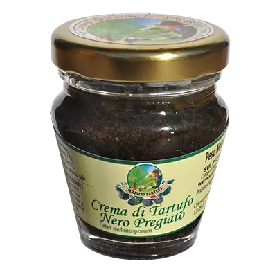 La crema di tartufo nero pregiato in olio di oliva, sale e aromi è disponibile in vasetti di vetro da 30 gr e 50 gr.